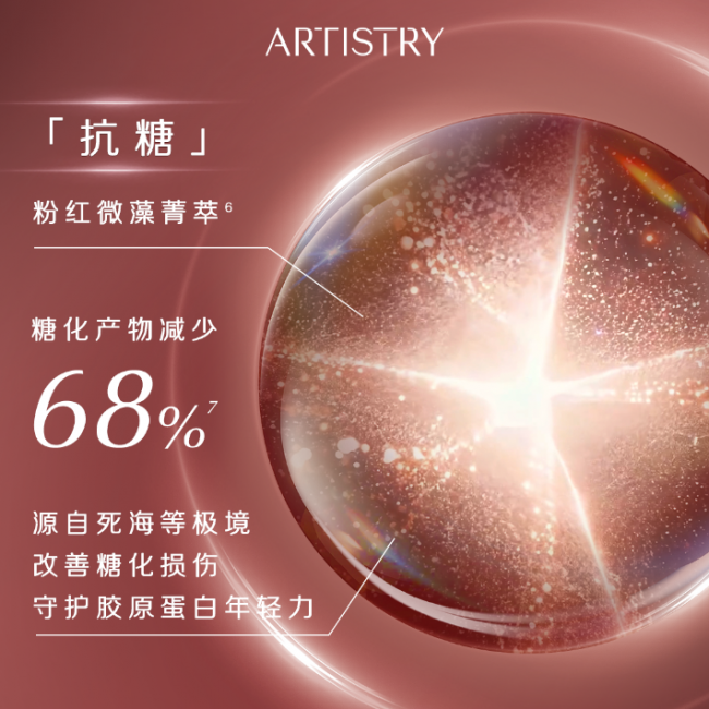 • 粉红微藻菁萃(抗糖主力):从天然微藻中提取,精准阻断糖化反应,直击中国女性因饮食、作息导致的肤色暗黄问题;